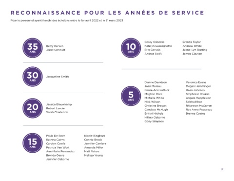 RECONNAISSANCE POUR LES ANNÉES DE SERVICE
