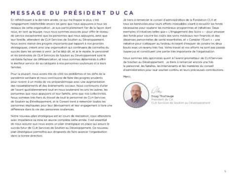En réfléchissant à la dernière année, ce qui me frappe le plus, c’est Je tiens à remercier le conseil d’administration de la Fondation CLH et